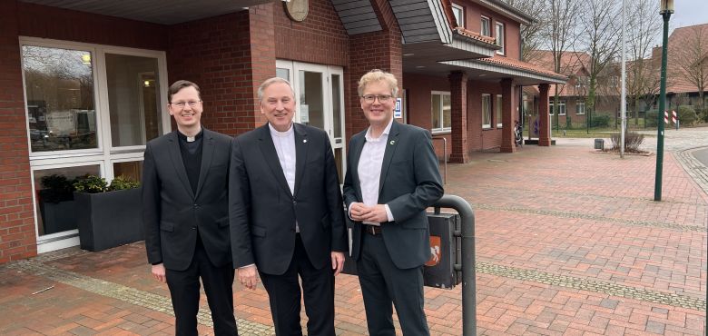 Im Rahmen seiner pastoralen Visitation hat der Offizial Weihbischof Wilfried Theising zusammen mit Pfarrer Jörn Illenseer am 07.03.2024 Bürgermeister Marcus Brinkmann besucht, um sich über